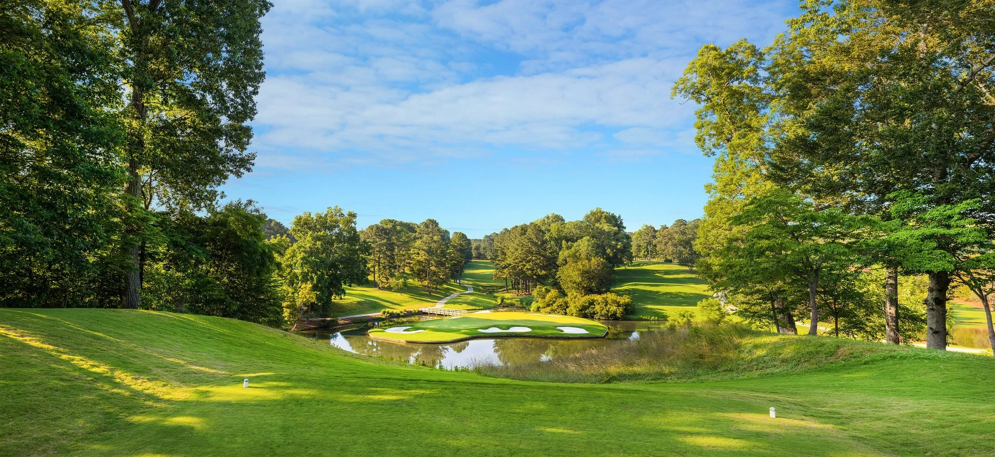 Designed by Rees Jones, The Green Course offers a captivating escape into 105 acres of serene Virginia woodlands. Spanning over 7,100 yards from the back tees, each hole feels like its own secluded adventure in championship golf, free from encroaching real estate. After your round, relax at the clubhouse lounge, featuring a pool table, foosball, cornhole, and on-site dining.